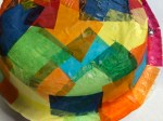 - Glue colorful paper pieces to the outside of the bowl (tuck the tentacles inside the bowl while you glue)